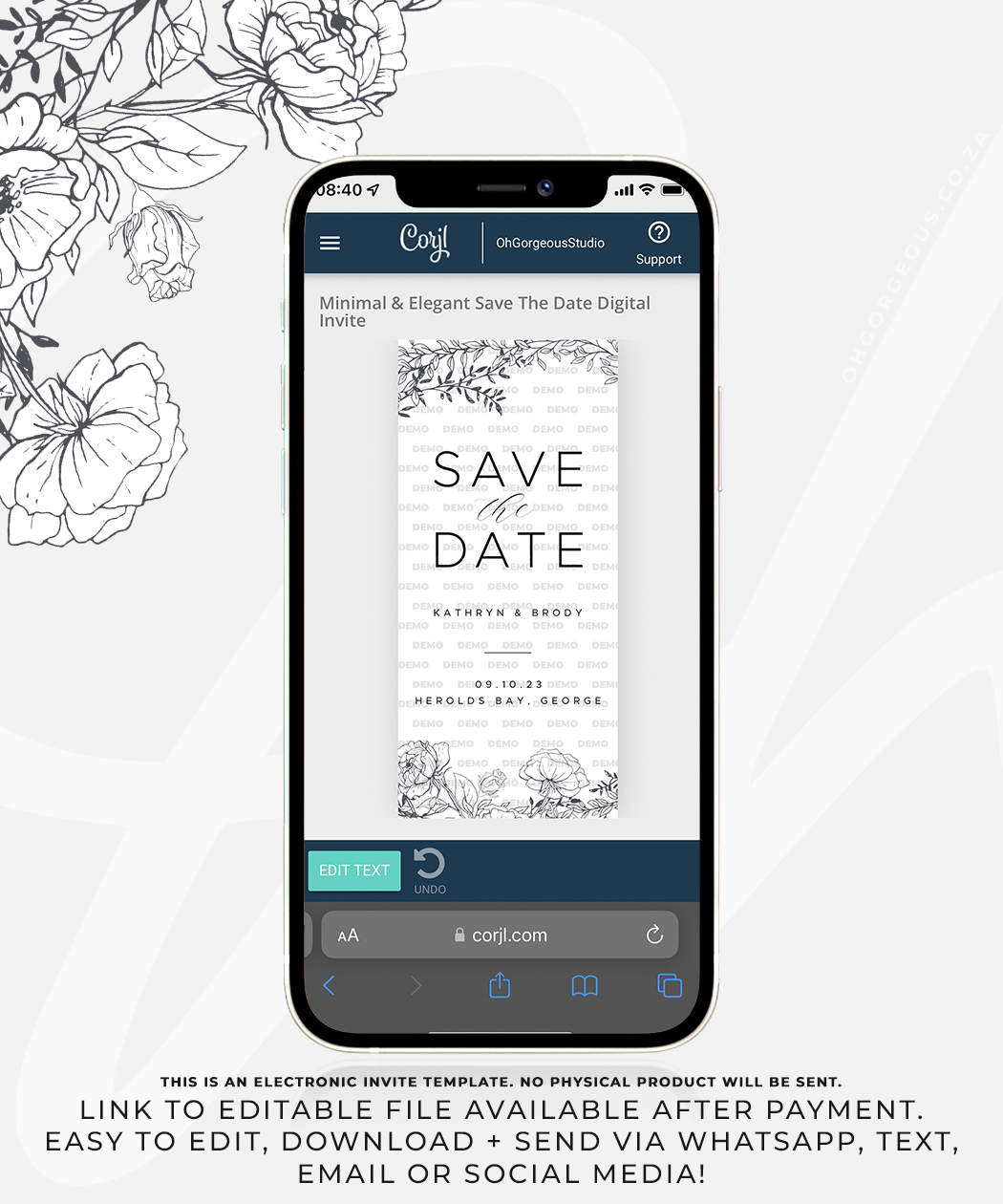 File Information: 1125px width x 2436px height digital image (Mobile e-invite size) which you can save in either jpg, png or pdf format once you have customised your design.